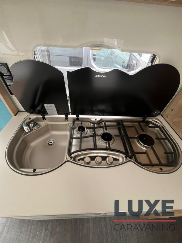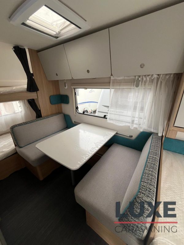 Caravana dethleffs de 3 ambientes con cama francesa con capacidad hasta para 6 personas ideal para un descanso reparador, además de múltiples espacios que permiten alojarse, perfecta para familias o grupos de amigos